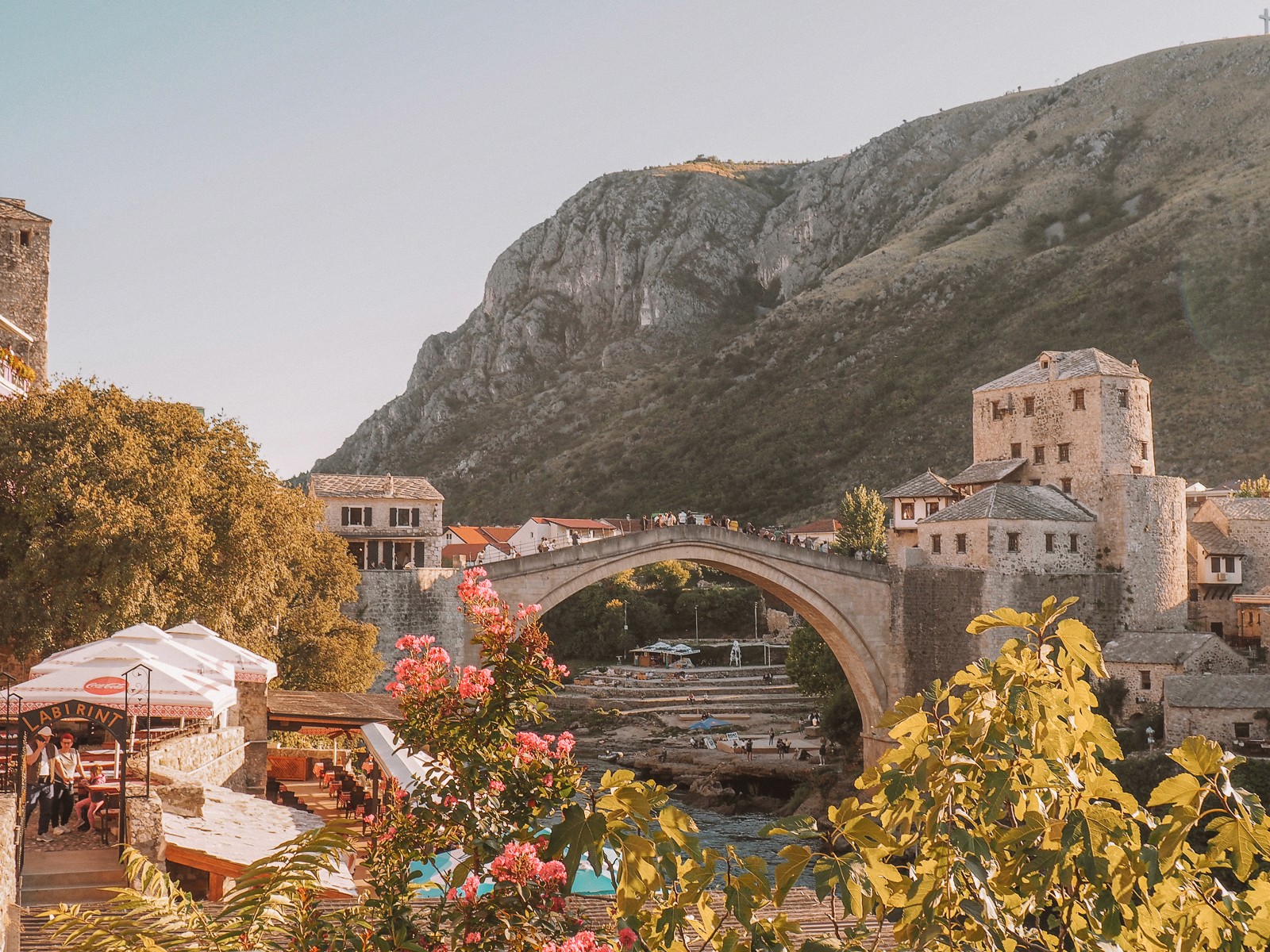 The city of Mostar is located in the south of Bosnia and Herzegovina, on the banks of the emerald-green Neretva. It has been inhabited since prehistoric times. Its location in a basin between the mountain massifs of Velež (1968 m) and Čabulja (1776 m) at an altitude of just 60 m above sea level makes for a hot microclimate.